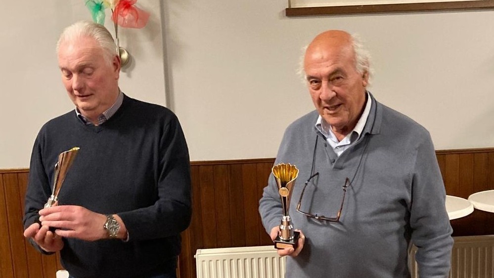 Altijd spannend, wie wordt de kampioen van Thorn-a-Tous van het jaar? Meestal is het een tweestrijd en ook nu weer. Maar na een machtsstrijd van een heel jaar werden Ton en Peter-Paul de terechte en gevierde kampioenen. En de uitgereikte prijs mogen ze houden omdat het bestuur besloten heeft niet langer meer met een wisselbeker te werken. Ere wie ere toekomt. En de schouw bij beide heren thuis is er weer wat fraaier op geworden.